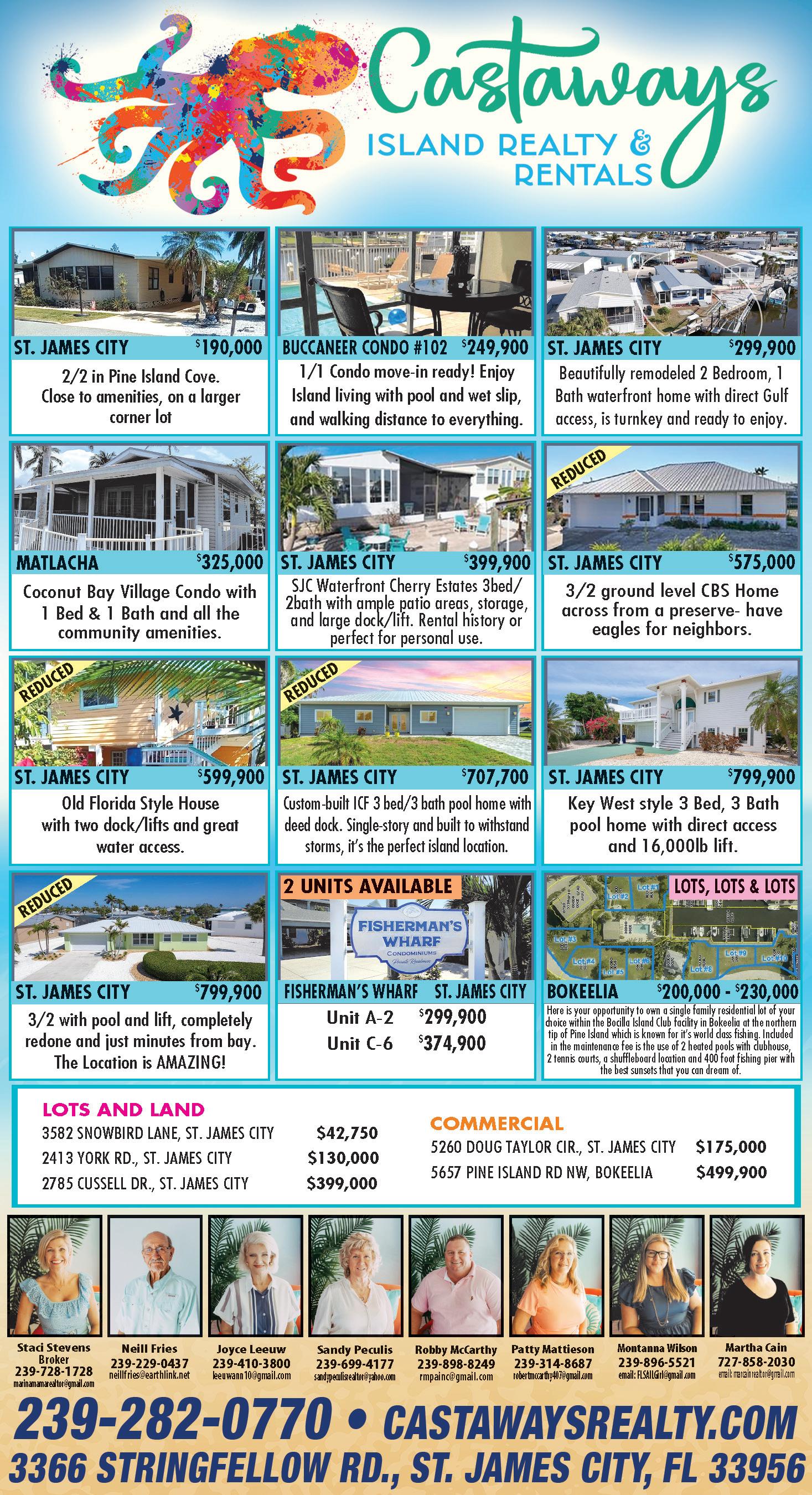 In the event of an advertising error, we are responsible only for the first incorrect insertion of the ad itself. We are not responsible for any credit or reimbursement after 30 days from publication. Postal Information: Bulk rate postage paid at Fort Myers, FL Postmaster. Send address changes to the Pine Island Eagle. Permit # 521.