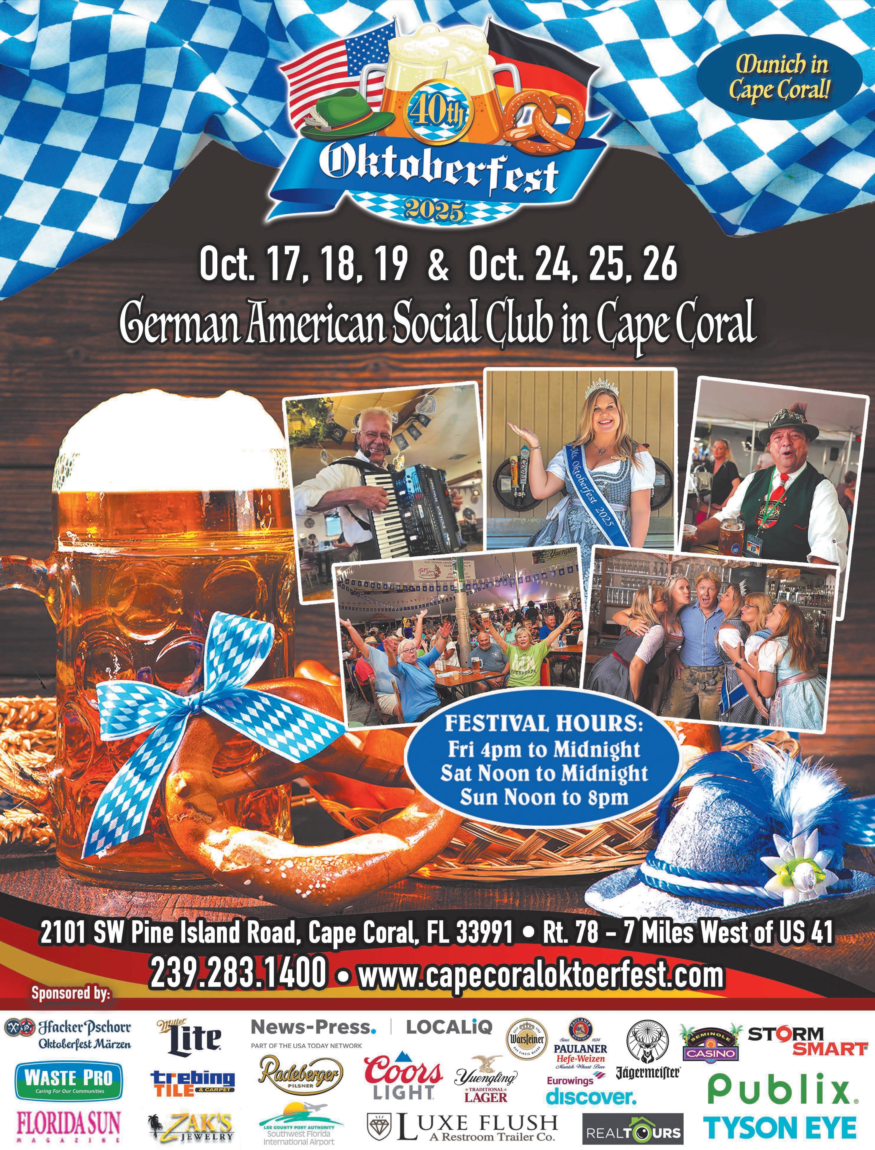 The German American Club of Cape Coral’s 40th Annual Oktoberfest will welcome thousands to the Bavarian Garden grounds this weekend and next, bringing their version of the staple event in Munich to life here locally.