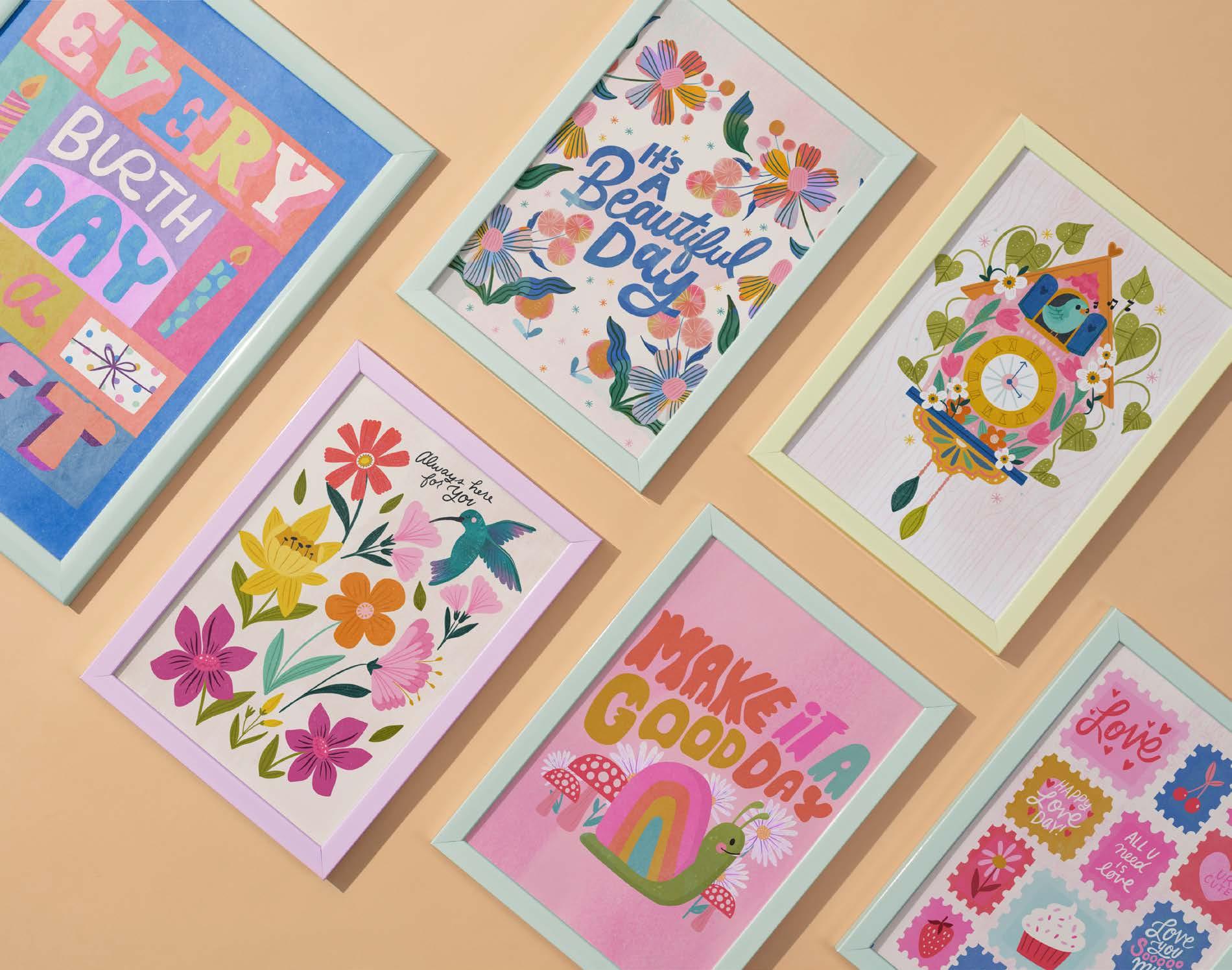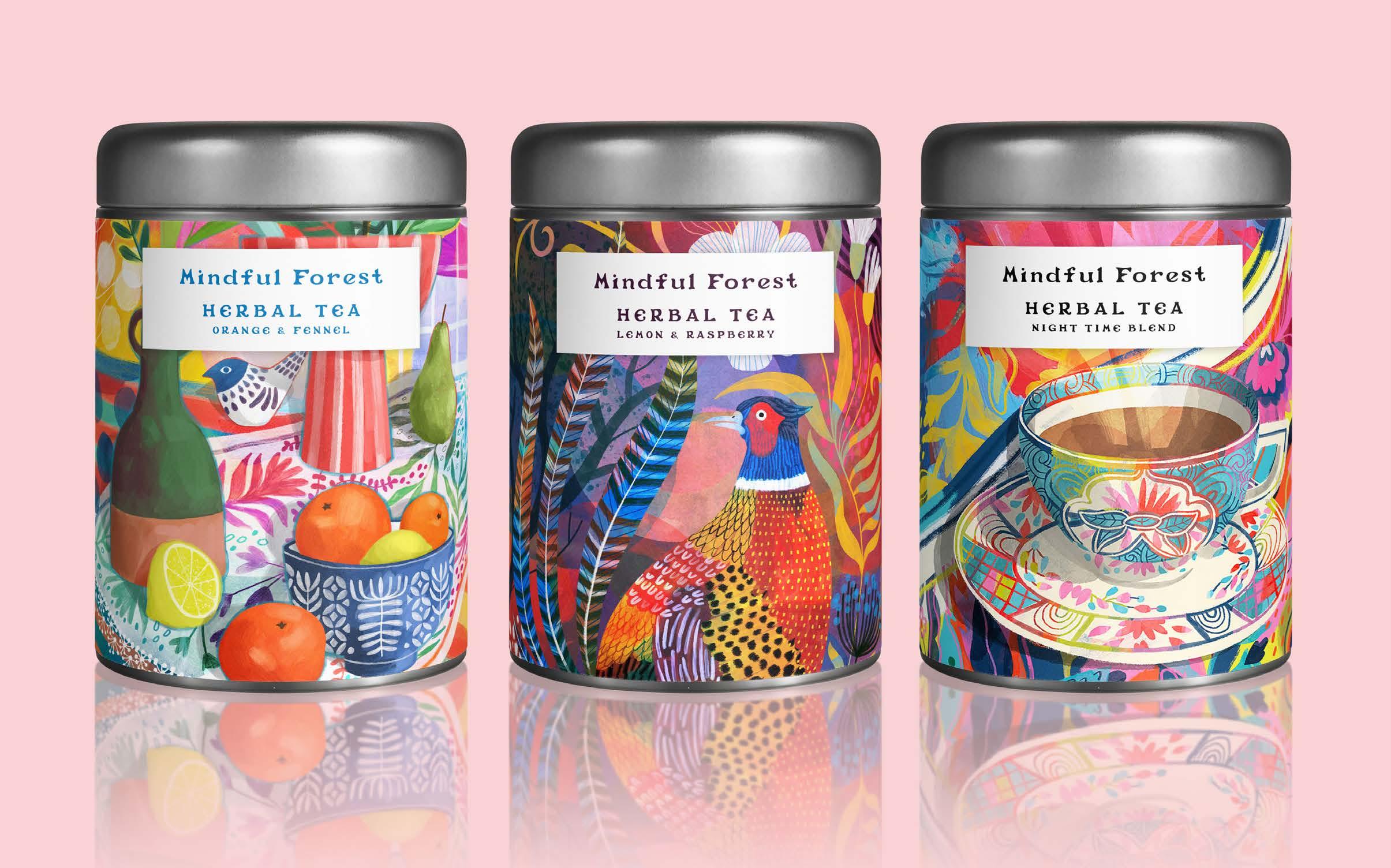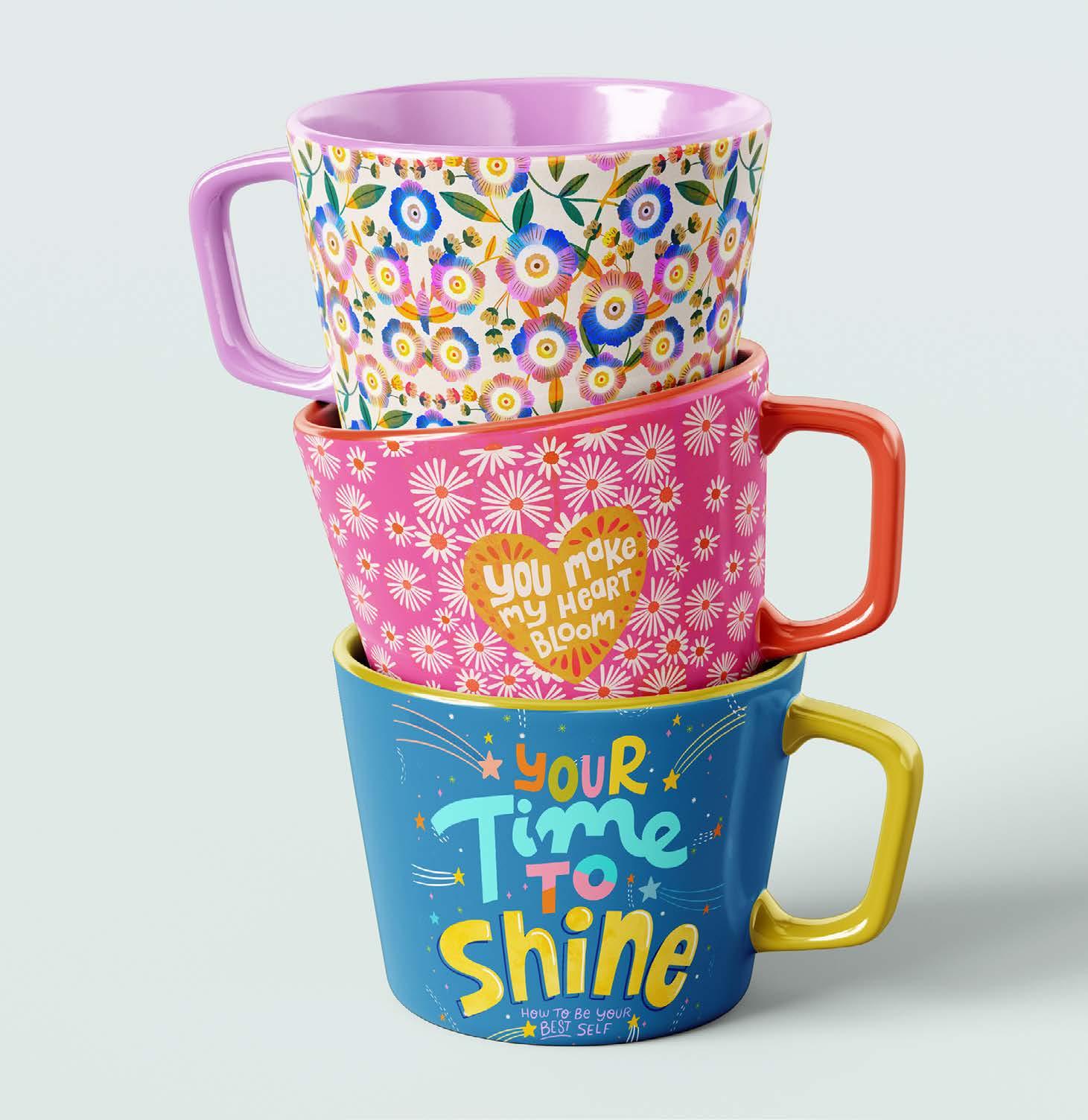 Her fun, slightly tongue-in-cheek designs are inspired by life, fuelled by a good-natured sarcasm, and bursting with colour and humour. She drinks tea like it’s going out of fashion, and loves cake (but she’s really trying to eat less of that these days).