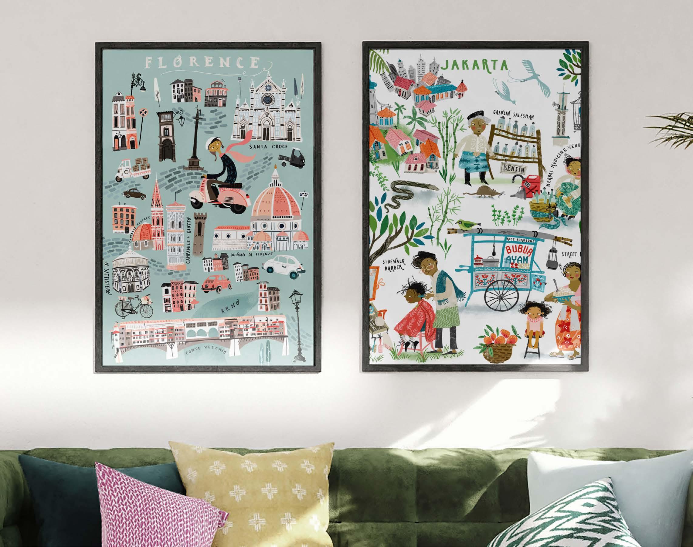 Åsa Gilland is a Swedish illustrator living in Jakarta, Indonesia with her family and cats in a little house beneath a gigantic bougainvillea tree. She studied interior design at Accademia Italiana Moda in Florence and spent many years as a graphic designer before pursuing her love for illustration and picture books. She works in a combination of traditional and digital media, drawing her inspiration from the mixture of cultures in the world around her. Her characterful illustrations reflect the rich diversity of her own lived experience. She loves history, patterns and drawing people.