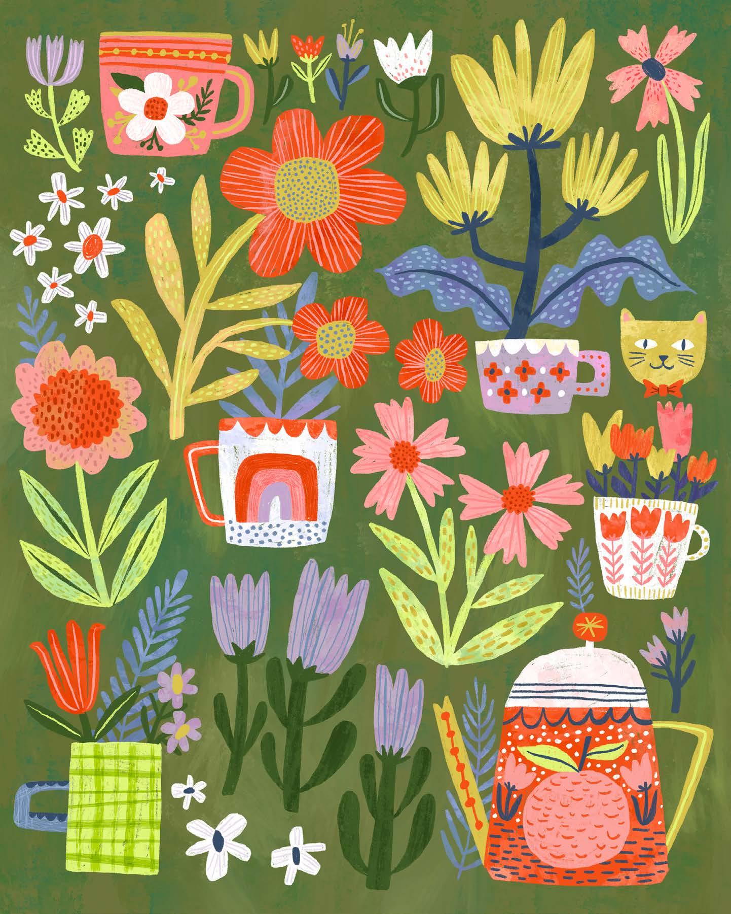Kate is a British illustrator and pattern designer. She studied textile design at Manchester School of Art and has enjoyed many years designing prints for children’s clothing. Kate’s colourful designs have also been featured on craft fabric, gift wrap, and children’s toys. Clients include Dashwood Studio, Little Sleepies, Glick, George at Asda, and Tu at Sainsbury’s. Kate works digitally with painterly textures and uses bold, bright colours to bring a sense of joyful warmth to her characters and illustrations. When not in her studio, Kate loves baking, gardening, and marvelling at nature doing its magic each season while walking in the local countryside. Kate lives in Nottingham with her husband, three children, and their tabby cat called Vincent.