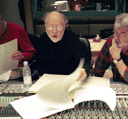 John Williams und Regisseur George Lucas im Studio während der Aufnahme des Soundtracks von Star Wars: Episode II – Angriff der Klonkrieger, 2002