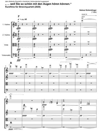 Erste Partiturseite von Helmut Schmidingers »... weil Sie so schön mit den Augen hören können.«, 2025