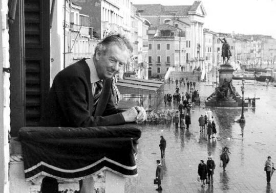 Benjamin Britten auf dem Balkon des Hotel Danieli während seines letzten Venedig-Aufenthalts im November 1975