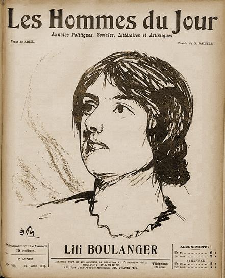 Lili Boulanger auf dem Titelblatt der Zeitschrift Les Hommes du Jour, Zeichnung von Gaston Raïeter, 1913