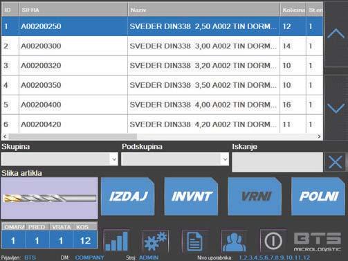 BTS Micrologistic je napreden sistem za upravljanje orodij, ki združuje avtomatizirane omare in zanesljivo programsko opremo – popolna rešitev za nadzor nad porabo in razpoložljivostjo orodij neposredno na mestu uporabe. Podjetjem omogoča znižanje stroškov, zmanjšanje izgub ter zagotavlja brezhiben in nemoten potek proizvodnega procesa. Na voljo so različni modeli omar, ki se prilagajajo specifičnim potrebam glede velikosti prekatov, števila odlagalnih mest in stopnje avtomatizacije.