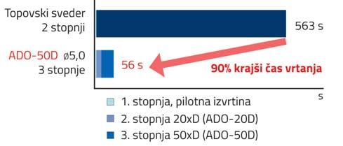 ADO-40D in ADO-50D v primerjavi z topovskimi svedri zagotavljajo boljšo ravnost izvrtine in kar 90% skrajšanje časa vrtanja.
