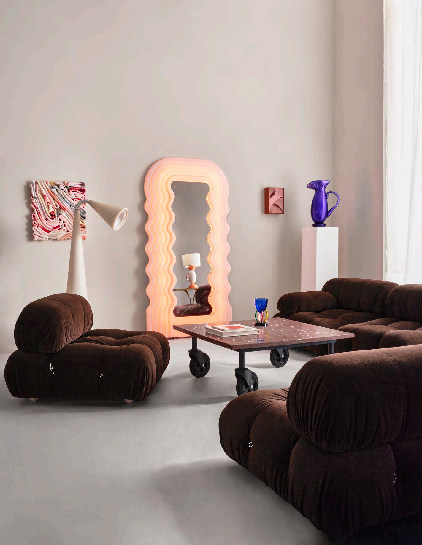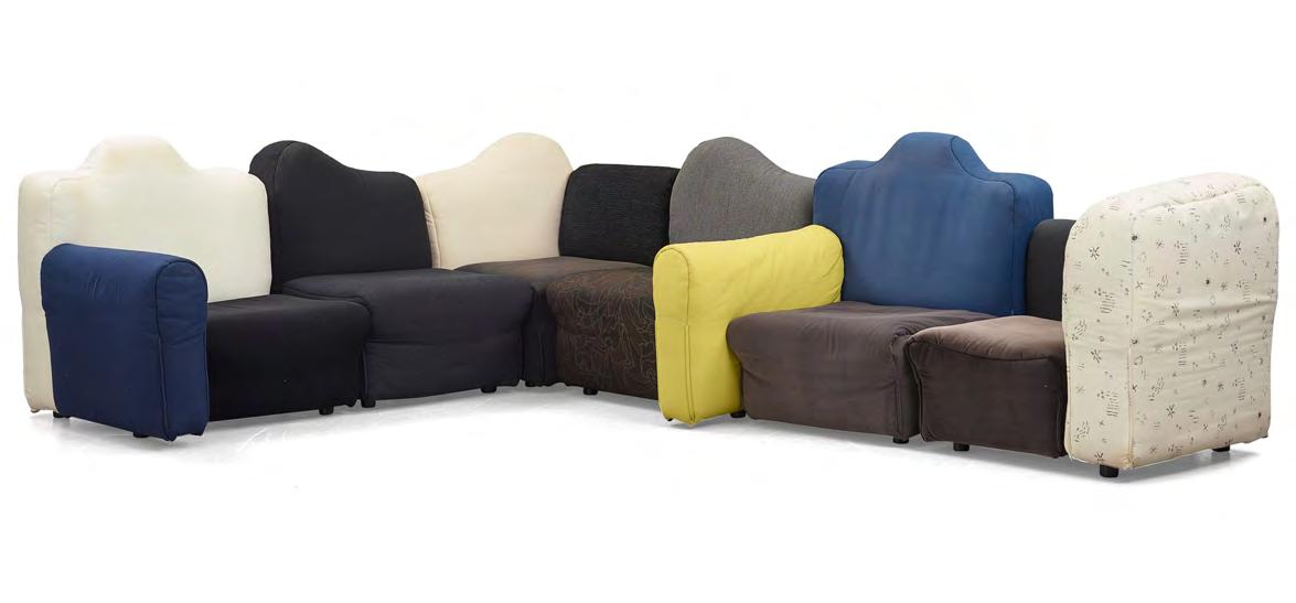 283. Matthias van Arkel, Untitled. 34. Mario Bellini, a ‘Camaleonda’ sofa, B&B Italia, c. 2020. 83. Jakob Timpe, a ‘Camp’ floor lamp, Marset Iluminación, Spain, post 2004. 10. Ettore Sottsass, an ‘Ultrafragola’, mirror, Poltronova, Italy, 21st century. 3. Matteo Thun, a table lamp, ‘Memphis’, ed. 9/200, Drimmer, France, c. 1982. 50. An Italian terazzo low table, 1980s. 123. Ettore Sottsass, a Memphis glass goblet ‘Deneb’, Toso Vetri d’Arte, Italy, 1980s. 436. Martin