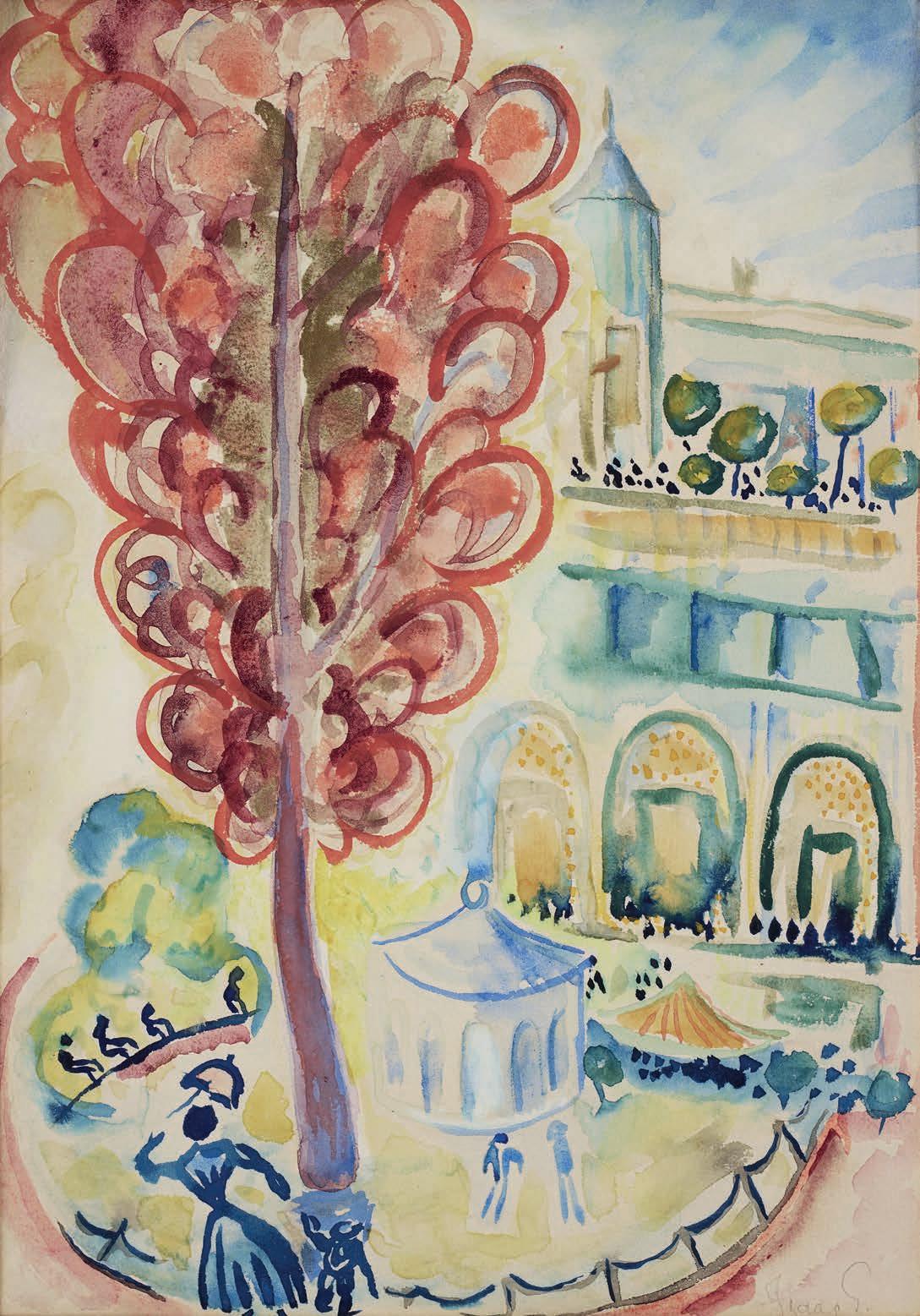 Signerad Max Walters och daterad –62. Gouache, bildyta 45 x 36 cm.