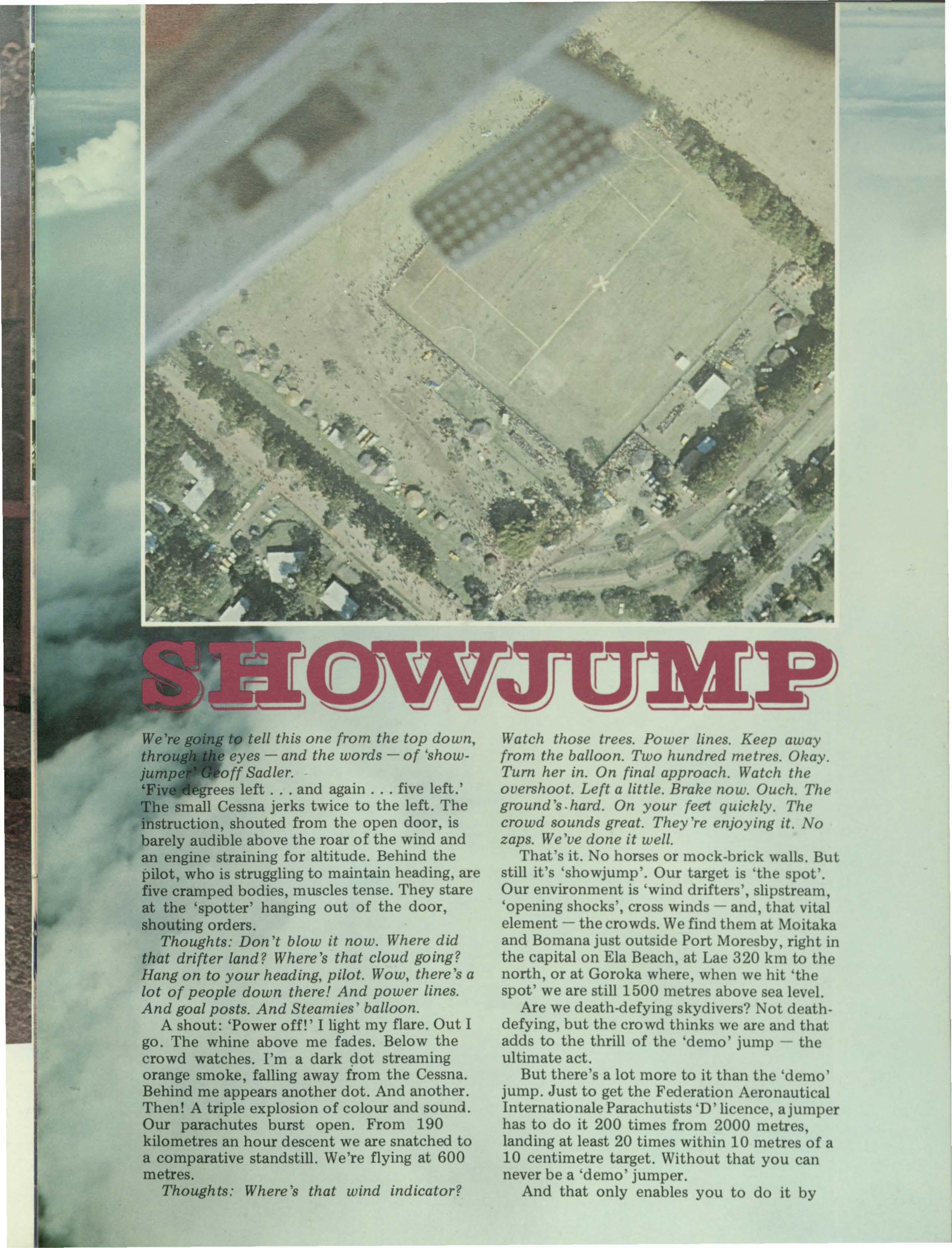 All our talks throughout the countries Operation Drake will be visiting have given me a far greater understanding of the problems their governments are facing in this direction. I have been impressed by the search for the solution to the universal problem of compromising conservation and economic development. One of the areas of the tropical rain forest, about which very little is knownatpesent, is that of the life in the forest canopy, some 45 metres above ground level. This delicate environment is the 'powerhouse' of the forest, where many rare and un usual plants and animals have specially adapted themselves for survival. I have only glimpsed the fleeting dash of brilliant colour as a Bird of Paradise flits hundreds of feet above my head, during a recent trip to Papua New Guinea; and when look-
