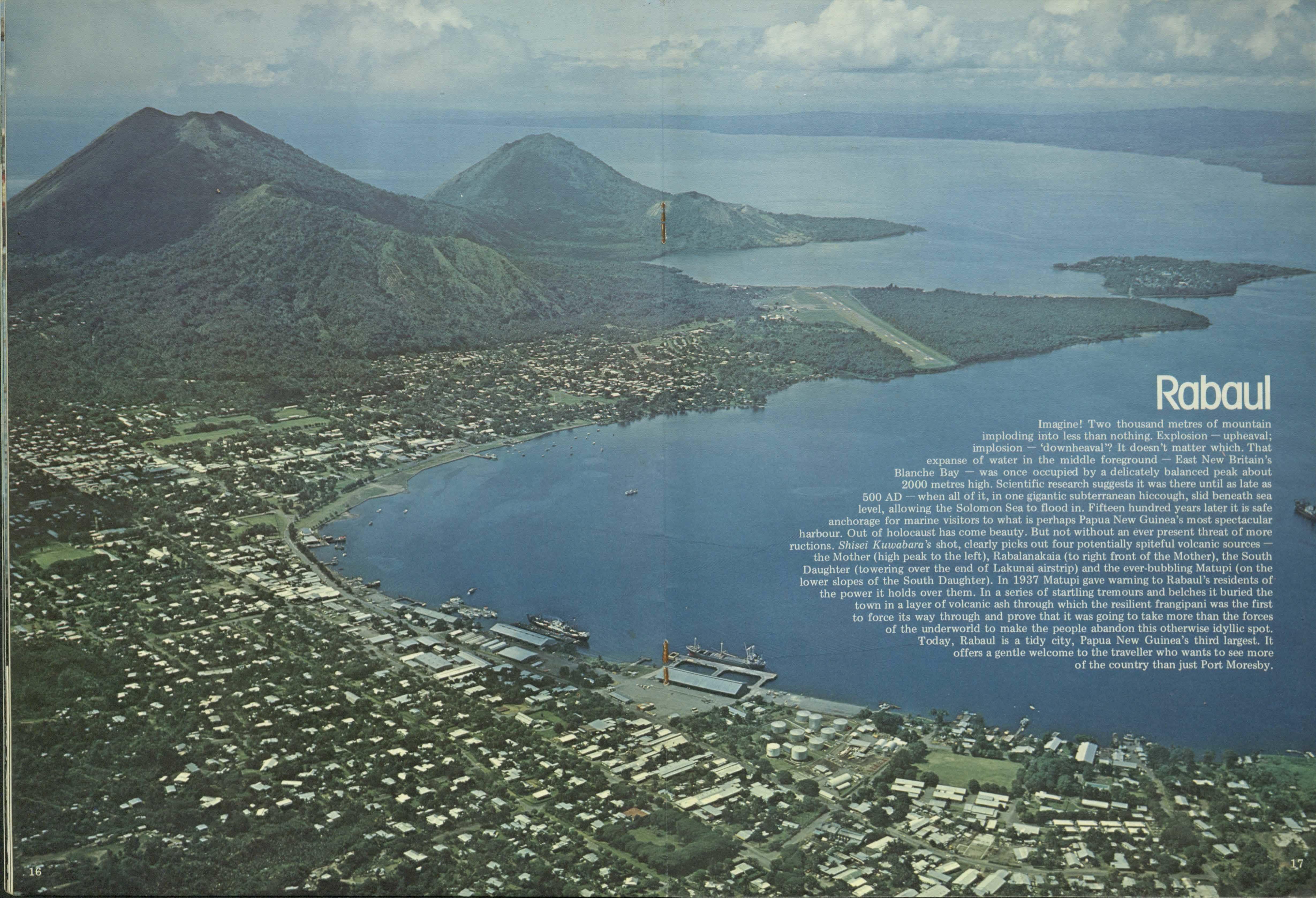 Shisei Kuwahara captures everything that lingers in the memory of the airborne visitor to Rabaul, capital of East New Britain Province, with this shot of one of the most breathtaking areas of Papua New Guinea. At the end of the airstrip is Matupi volcano and dominating the skyline is the dormant South Daughter. There's another Kuwahara masterpiece in the centrespread.