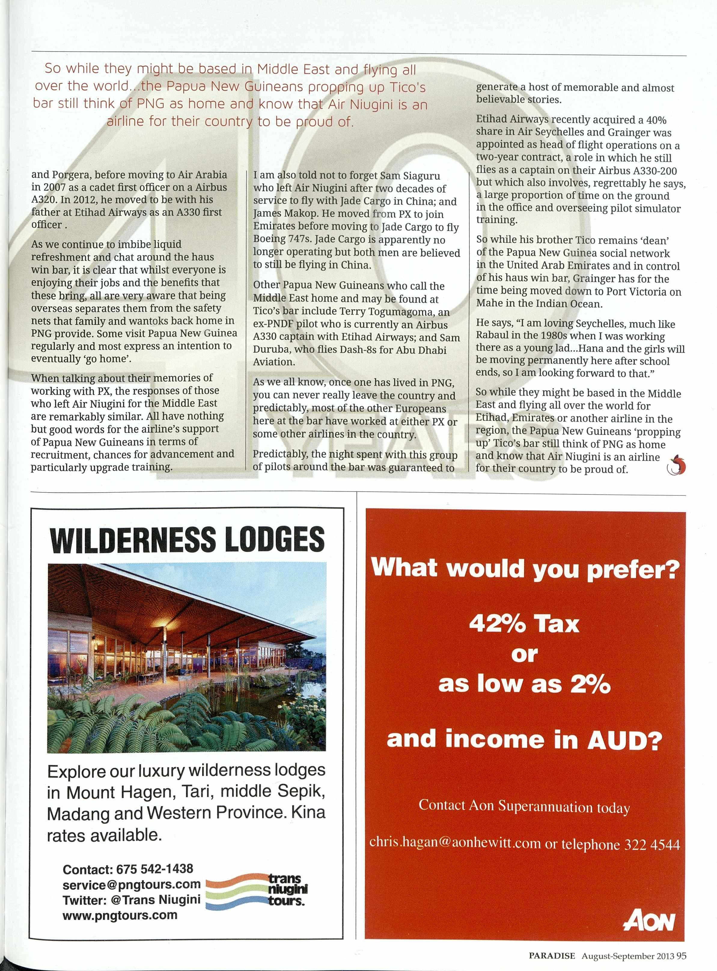 Vol 4 July 2013 of Paradise magazine, the inflight magazine of Air Niugini, the national airline of Papua New Guinea.