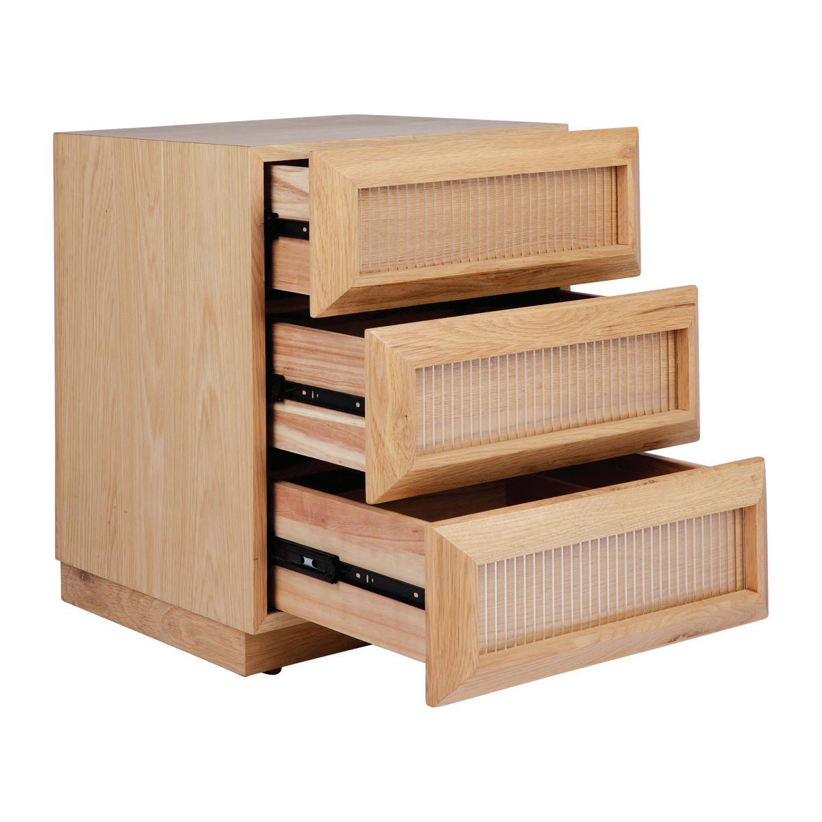 Constructed from beautiful oak timber veneer in three on trend finishes; Natural, Painted Black and White with elegant fluted glass paneling on all fronts.