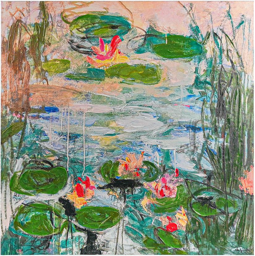 This stunning painting by renowned American artist Sandy Welch captures the vibrant essence of nature. With provocative colours and dynamic textures, Sandy’s work bursts with a flirtatious style that’s both bold and emotive. Featuring vivid water lilies and lush greenery, this composition transports viewers to a sunlit, luxurious meadow. Perfect for adding energy and personality to any space, this artwork exemplifies Welch’s unique approach to capturing life’s beauty.