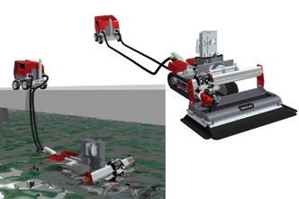 Both robots in the 450 series are electric powered, making them ideal for urban Hydrodemolition projects and other environments where zero emissions are required. They also feature a detachable Power Control Module (PCM), allowing the PCM and the robot’s tracked crawler to operate separately. This enables the PCM to remain in a