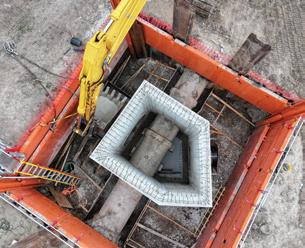 • Challenges: The extreme depth of the excavation and specialized use of shoring solutions