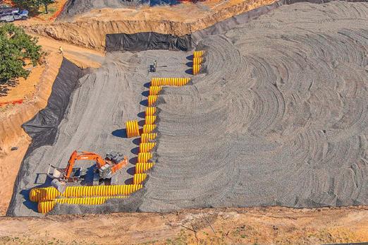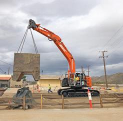 Above: Mozingo Construction utilizes Hitachi excavators to place chambers in the stormwater retention system as part of the