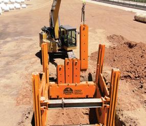Above: An 850-foot-long, 36-inch-wide excavation prepared for the installation of a 96-inch Contech retention system.