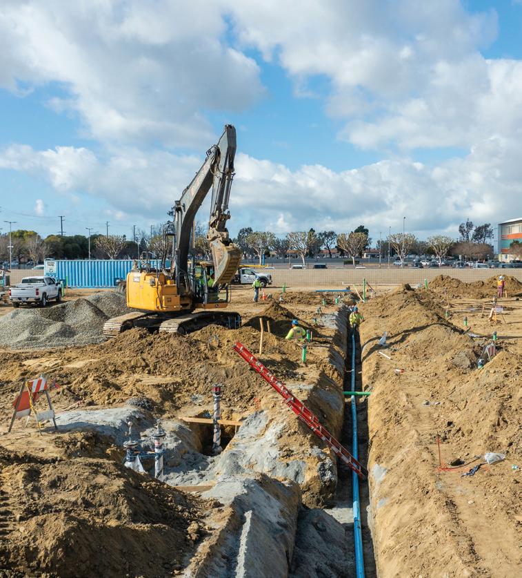 Kana Pipeline, a non-union subcontractor, has made significant progress on the Essex & Gage project in Huntington Beach at Edinger & Gothard. The company is handling all sewer, water, storm drain, and fire line installations for this 129-unit townhome community. Landsea Homes recently broke ground on this all-electric townhome project that are each three stories high, with two to four bedrooms, and anywhere from 1,097 square feet to 2,516 square feet.