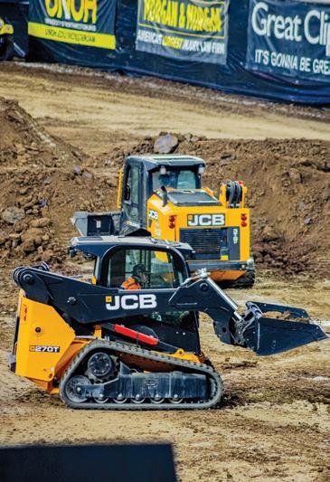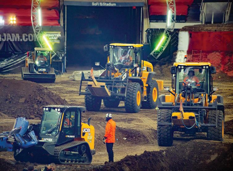 catered food and our driver, Tristan England, on location all day long. The driver for El Toro Loco lives nearby, and when he heard about the event, he was good enough to join us, so we had two awesome drivers at our open house,” says Wright. “We were also part of the pit party event outside SoFi Stadium where we had nine pieces of JCB equipment staged all weekend long. There were probably 3,000 people in and around our booth, with both adults and children jumping in and out of mini excavators and compact telehandlers. It resembled a carnival-type atmosphere and everyone had a great time.”