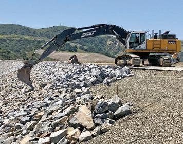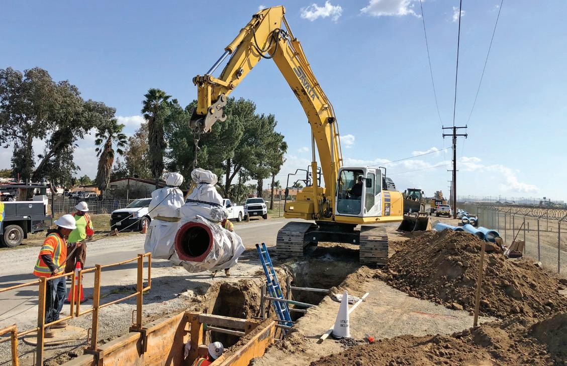 Above: Palacios utilizes a Komatsu PC360CL on a water pipeline project in Perris earlier this year.