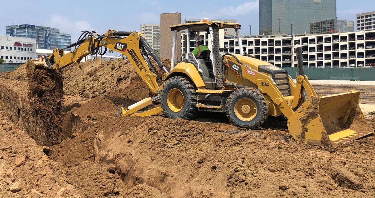 Above: Palacios uses a CAT 450 backhoe at the United Hanger at LAX for Griffith Co.