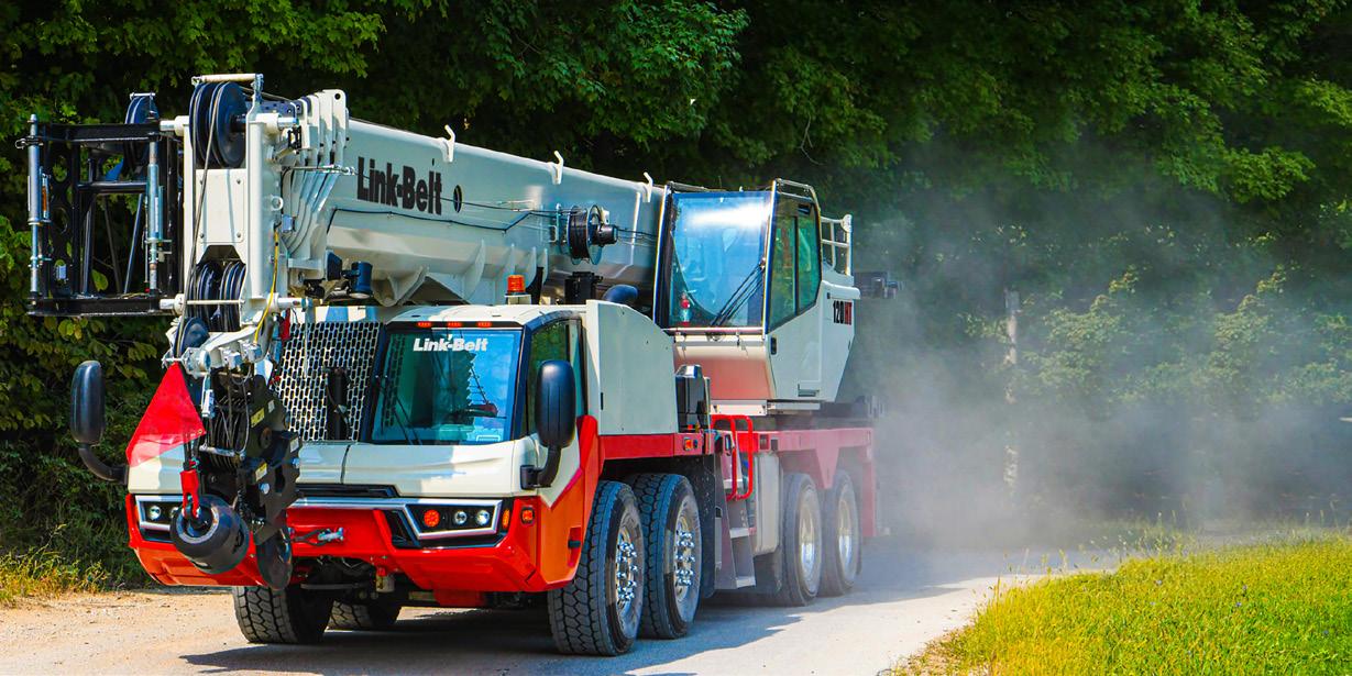 Link-Belt Cranes announces the new 120 US-ton base rated, 120|HT hydraulic truck crane, featuring an all-new air ride suspension design, increased counterweight payload to reduce the 120|HT’s gross vehicle weight and two lattice insert extensions.