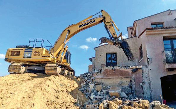 Roche Excavating Inc.’s Komatsu PC360LC excavator demoing a home in Irvine to make room for a new build.