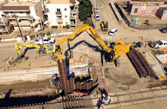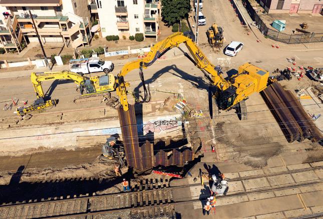 grading and 2800 LF of sheet pile for a new flood channel and 66-mile bike path,” says DellAringa. “We are union on the West Coast and work closely with large Civil GCs, and numerous public agencies. We are recognized as the U.S. leader in sheet pile installations utilizing Giken Silent Pilers, a unique non-vibratory, non-percussive piling machine. Our company has completed hundreds of projects with hundreds of thousands of linear feet of sheet pile installation using our Giken machines. There are maybe 15 Giken pilers in North America and we own ten of them.”