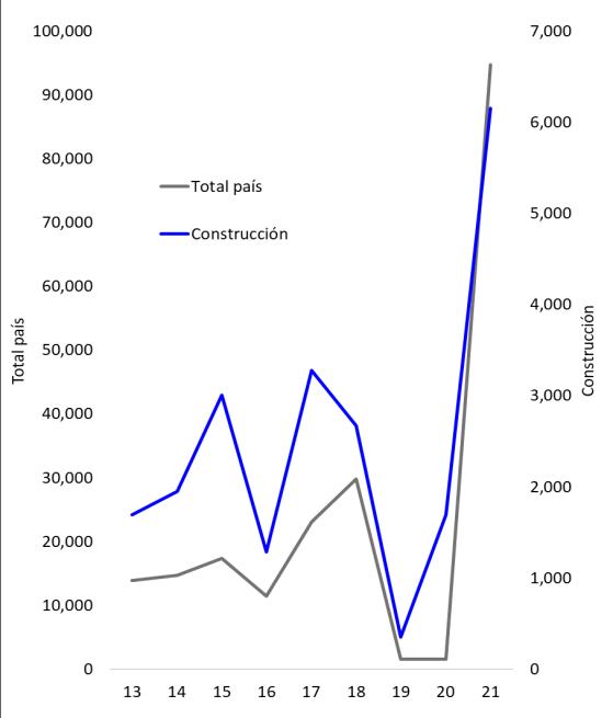 Figura 2. Entrada neta de empresas: Construcción vs país