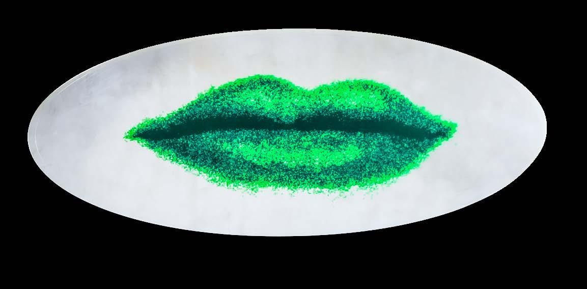 Struttura in ottone con decori serigrafati raffguranti ‘Gli amori delle sirene’ e ‘La regina delle sirene’.
