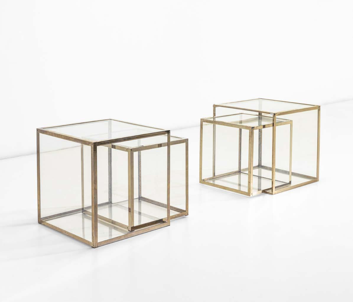 Struttura in ottone e coppe in cristallo curvato acidato di forte spessore e cristallo curvato.