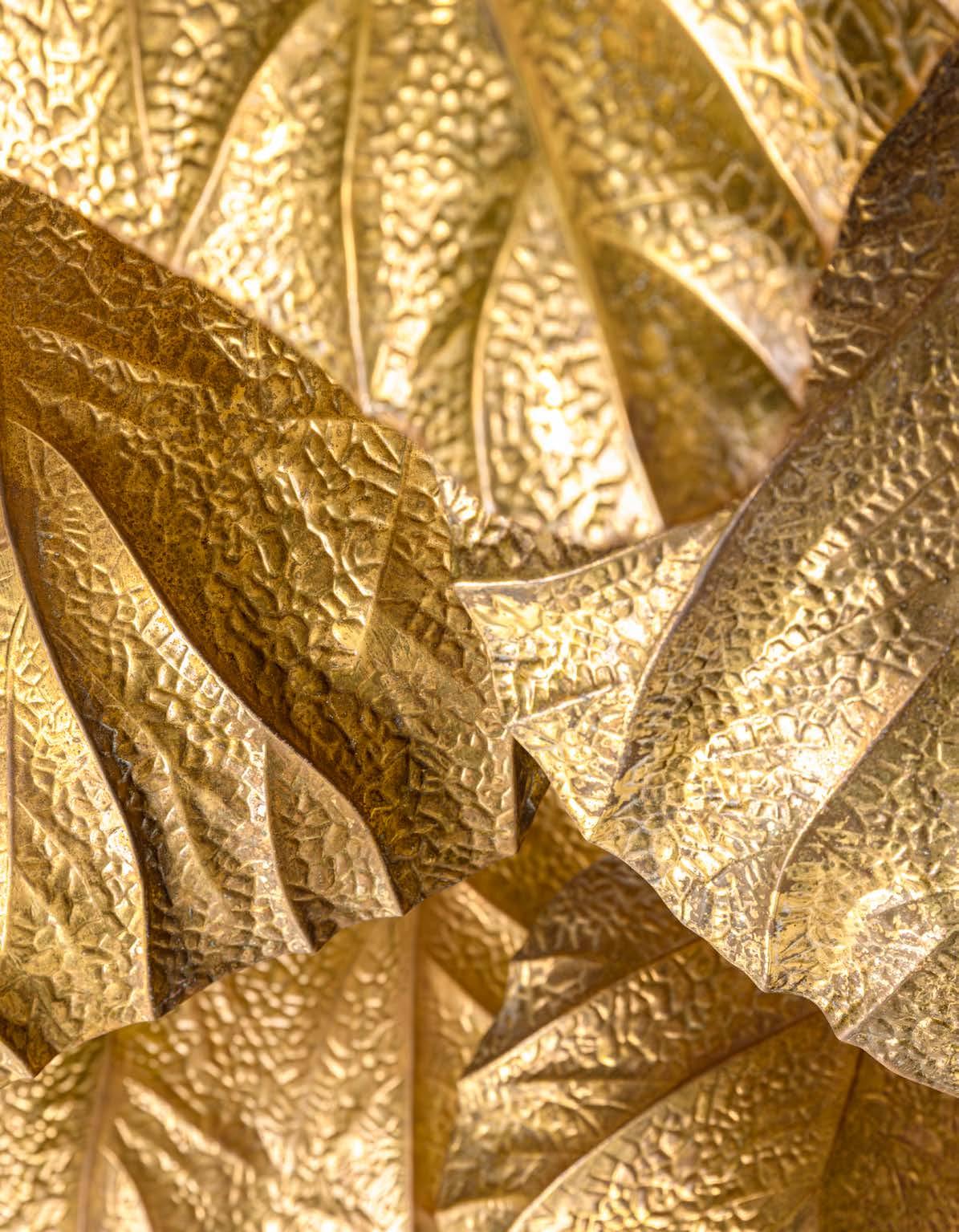 Struttura in ottone e diffusori in cristallo curvato molato e cristallo curvato satinato.