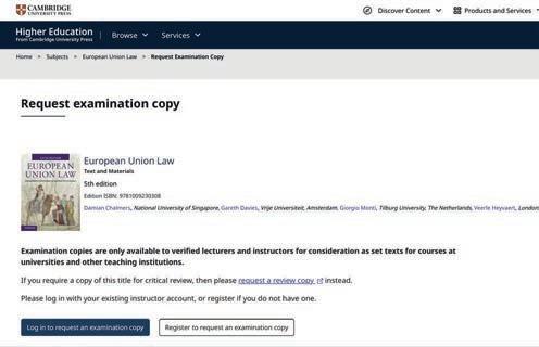Visit cambridge.org/highereducation, click Request instructor examination copy on any textbook page and complete the online form.