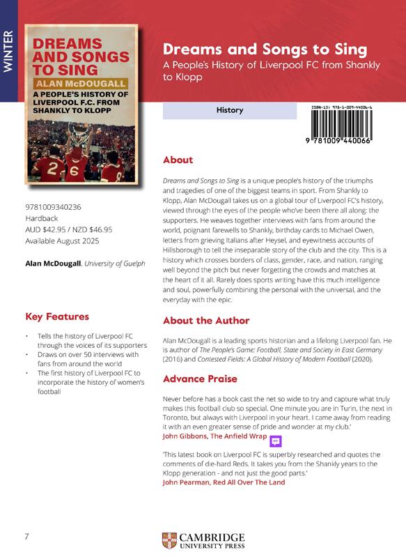 Alan McDougall is a leading sports historian and a lifelong Liverpool fan. He is author of The People’s Game: Football, State and Society in East Germany (2016) and Contested Fields: A Global History of Modern Football (2020).