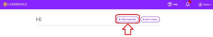 2. Depois de fazer o login, os alunos precisam ativar o código clicando no botão 'Add materials” e inserir o código de ativação comprado na Disal.