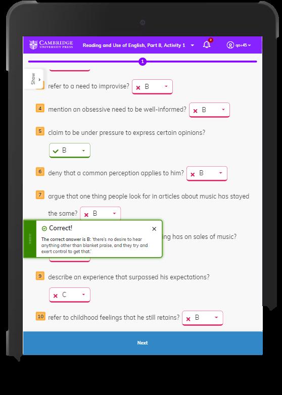 Whether you’re teaching English online, in a classroom, or a mixture of the two, we’re here to help you deliver successful learning experiences with demonstrable results. Access our flexible digital tools all in one place on Cambridge One.