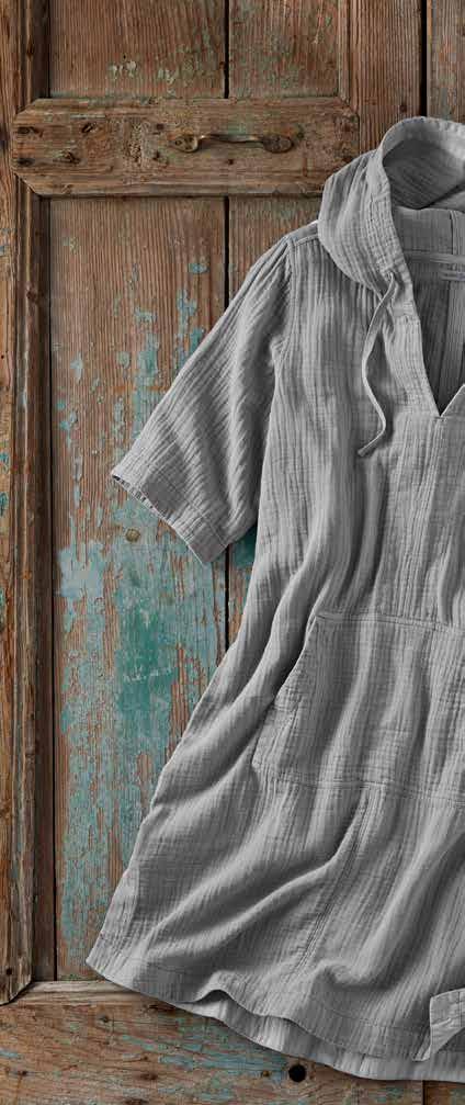 Made of two lightweight panels of pillowy soft cotton crepe, the look and feel of this dress is beachy and breezy. Features a hood with drawcord, flattering v-neckline, and kangaroo pocket. Poplin trim at the inner cuff, hem, and side vents for a smooth drape. Clean-finished seams. It works well as a cover-up and tunic, too. 100% cotton. Imported in Cement. Women’s sizes: XS-XL. [366008] $ 89