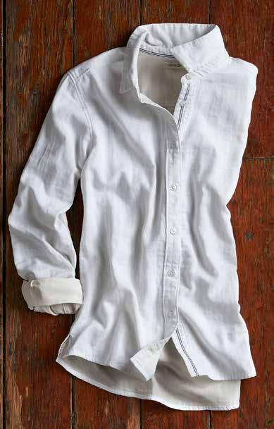 The essential white shirt elevated to ethereal softness. The easy, classic silhouette is also given a touch of French maritime flair with a striped grosgrain trim. 100% cotton. Imported in White. Women’s sizes XS-XL. [333006] $ 89