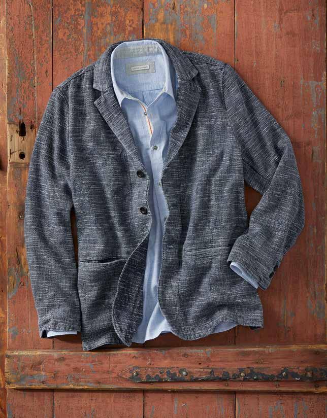Relaxed-refinement personified. Featuring a richly textured woven fabric that’s been specially washed to give it denim-inspired depth and dimension, this is the deconstructed-cool blazer that will transform your outfit. Slanted chest pocket. Four-button placket. Unlined with clean-finished seams. 100% cotton shell. Imported in Washed Indigo. Men’s sizes: S-XXL. [111158] $189