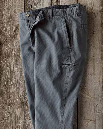 BETTER BET BEDFORD PANTS Ridge-textured bedford weaves are well known for their denim-like durability and khaki-like character, but stretch? You bet. We added just enough Lycra stretch (2%) to give the cotton a little give, improve your stride, and increase the comfort. Smooth styling includes a flat front with quarter pockets, inset zippered back pockets and side leg pocket, and a seamless hollywood waist. Slightly tapered fit. Imported in Olive, Petrol (thrown on page 41) or Khaki (thrown on page 18).Men’s sizes 30-40 (even) also 33 and 35 all with 32" inseam. [125026] $109