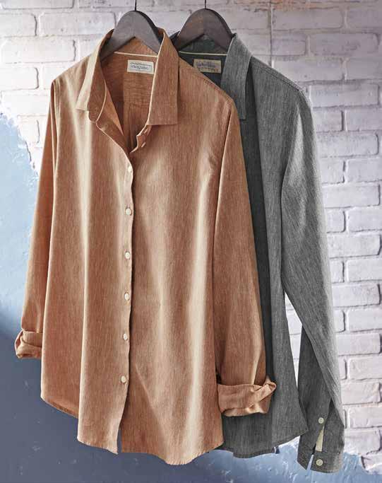 Your elevated solid button-down for the warmer temps. With its cool-wearing, soft drape, it’s a versatile essential. Faux pearl buttons. 45% Tencel™, 30% linen, 25% cotton. Imported in Terracotta or Ash. Women’s sizes: XS-XL. [ 333166 ] $ 95