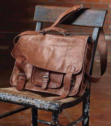 messenger bag Inspired by vintage mailbags and cycle courier bags, the double stitching and tough canvas lining of this bag make it a great day-to-day carryall. With a unique distressed vintage leather exterior, no two bags are alike. Under the flap is a main compartment large enough to hold a laptop and folders. Side zipper pocket and front pocket. Adjustable 54" shoulder strap. Hidden magnetic snap fasteners for easy yet secure opening/ closing. Imported in Smoky Quartz: W 15" x H 11" x D 4" [ 199001 ] $99