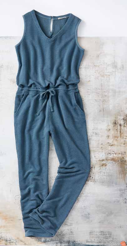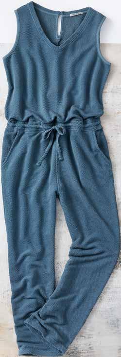 singular knit jumper Made of comfy textured knit, this is one of those one-and-done pieces that become instant favorites. Simple styling makes it easy to add accessories and sandals for daily jaunts or simply wear lounging. Features a flattering V-neck and internal drawcord at the elastic waist to streamline the fit. Front slash pockets. 79% cotton, 21% modal jacquard terry. Imported in Marine. Women’s sizes: XS-XL.