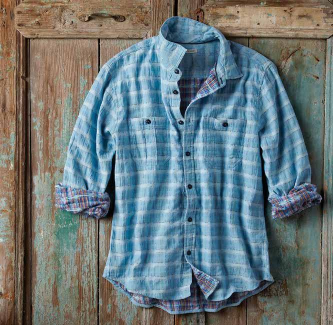 CARBON2COBALT.COM 805-687-7400 PRSRT STD U.S. POSTAGE PAID CARBON 2 COBALT carbon2cobalt 2021 CABOT PLACE, OXNARD, CA 93030 si g n u p for e ma il at: CARBON2COBALT.COM to b e t h e f irst to k no w ab out ne w c ollec tions a n d e xc lusi v e o ff ers Made of lightweight cotton, we love the sun-washed ivory, sky blue stripes, and ripstop weave that give it its rich textures. Interior chambray trim and brushed metal buttons. 100% cotton. Imported in Multi. Men’s sizes: S-XXL.