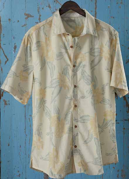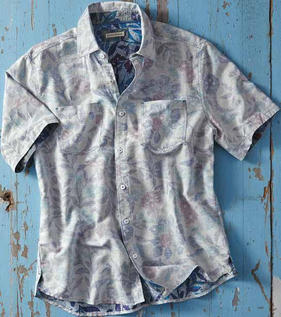 This shirt can’t help but get us in a relaxed state of mind. So soft and lightweight, the feel is as laidback as the look. Featuring a vintage-inspired floral print in a sun-washed palette, it has herringbone tape trim at the inner button placket and as an outer back locker loop. 50% cotton, 50% Tencel™. Imported in Multi. Men’s sizes: S-XXL. [ 133865 ] $89