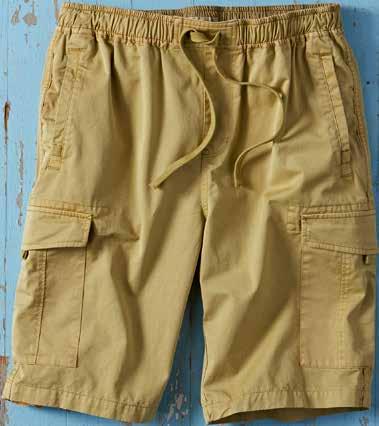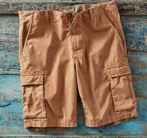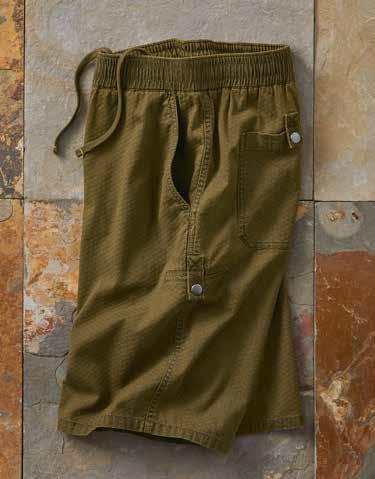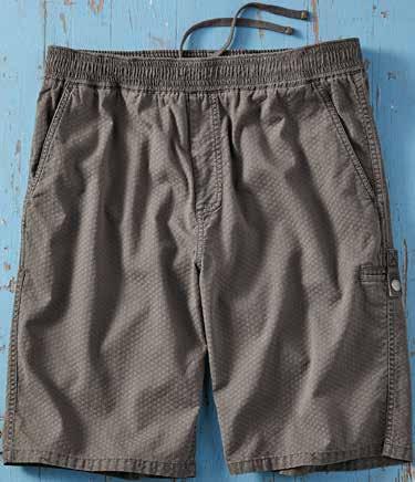 Cool textures, rugged details, and comfort - these shorts have it all. Made of mediumlightweight cotton with a touch of stretch, we love the diamond weave and the webbing trim at the snap cargo pocket and drop-in back pockets. Elastic waist with internal drawcord. Faux fly. 10" inseam. 98% cotton, 2% spandex shell. 100% cotton trim. Imported in Bark or Charcoal. Men’s sizes: 122107 ] $79