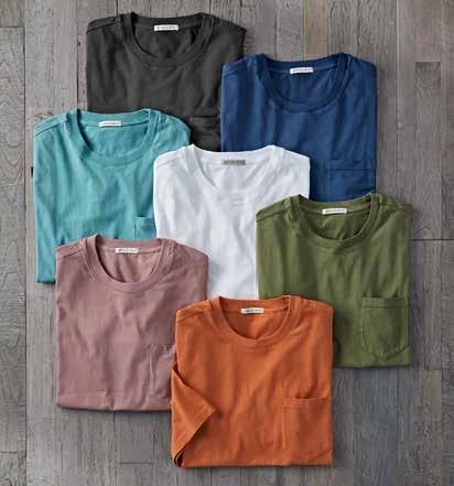 equilibrium tee Super-soft cotton, in a classic, short-sleeve, pocket crewneck silhouette. Finally, your most essential article of clothing has reached a state of perfection. Made in an assortment of versatile colors, you shouldn’t stop at just one. 100% cotton. Imported in (clockwise) Smoke, Twilight, Eucalyptus, Spice, Rose, Pool or White. Men’s sizes S-XXL. [ 144310 ] $49