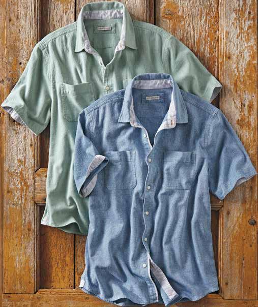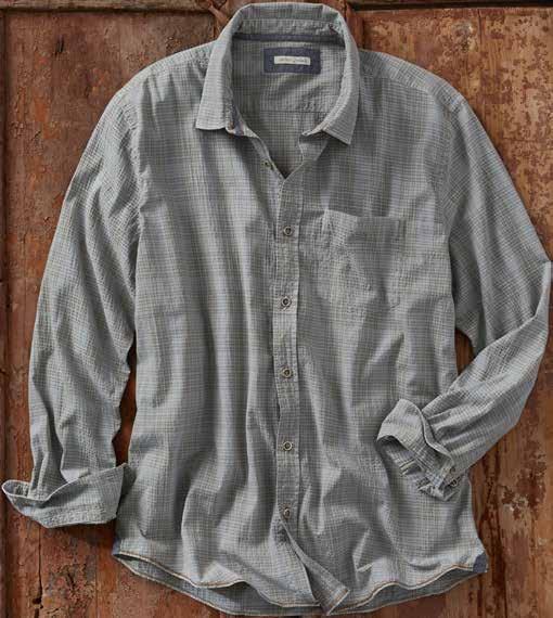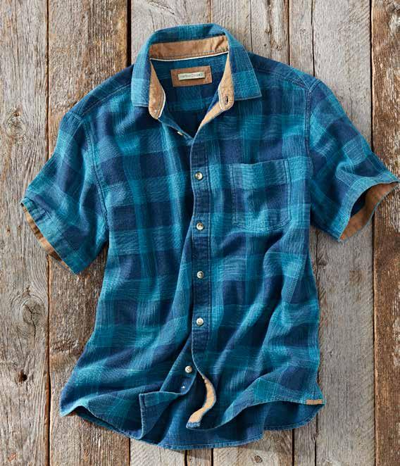 Like no other chambray shirt you’ve ever seen or worn, this one features a cool interwoven check with an inside, full-color plaid with soft-frayed edges. Light, lofty, and super-soft, the shirt really pops when you open the collar and roll up the button-tab sleeves.