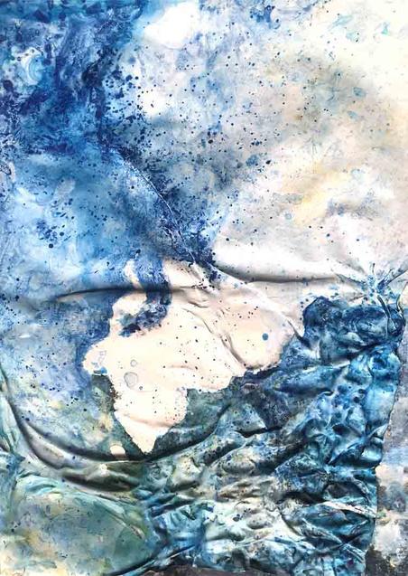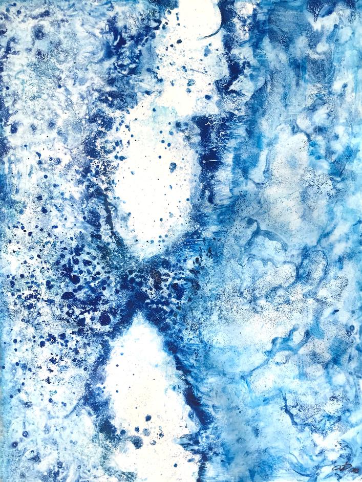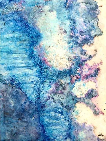 Mi obra es abstracta y realizada principalmente en acuarela pero se entremezcla con distintas bases, texturas y materiales para lograr plasmar mis raíces y emociones en cada una de ellas.